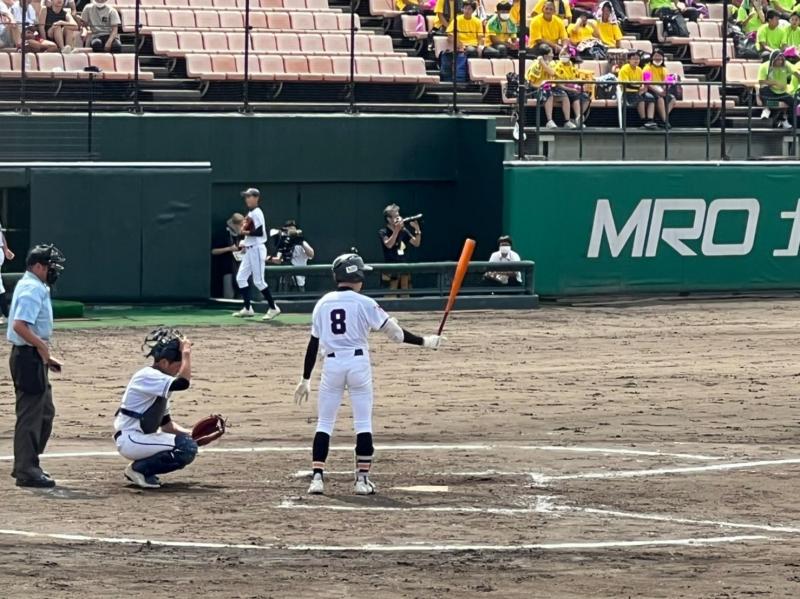 打撃では、4点を追う形で始り出塁したランナーを確実に進塁させ、1点ずつ返しに行きたい所だったが、相手投手の速球にタイミングが合わず凡打が続きで1回から3回までチャンスを作ることができなかった。4回に先頭打者が甘い球を捉え出塁し、犠打で得点圏に進塁させた1死2塁の場面で4番打者が右中間に弾き返して1点を返した。さらに6回裏、初球を積極的に攻める姿勢が功を奏し1、2番の連続安打で無死2、3塁とチャンスを広げた。その後、内野ゴロの間に3塁ランナーが帰還し1点を返し、再びチャンスで4番が初球をライトに弾き返し計2点を返した。6回終了時点で5ー3と均衡した展開となるが、7回の失点が大きな痛手となり、得点しなければコールドゲームと後がなくなった最終回、ランナーを出すも得点には結びつかず、悔しくも7回コールドゲームで試合終了となった。