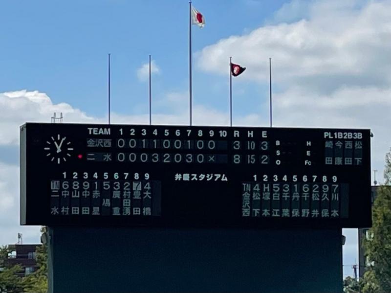 | 金沢二水 | 0 | 0 | 0 | 3 | 2 | 0 | 3 | 0 | ☓ | 8 |