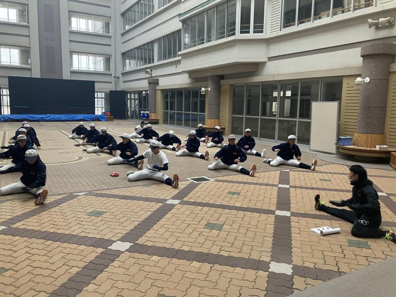 今年も12月から毎年指導いただいているトレーナーに来ていただき、ストレッチ、トレーニング、体の使い方などのトレーニングプログラムを組んでいただきパフォーマンス向上を目的に充実した日々を送っています。正しいフォームを身に付け正確に体を動かすには時間がかかりますが、トレーニングの目的を理解しコツコツと積み上げて大きな土台となっていくよう取り組んでいます。また自宅で取り組めるトレーニング方法やストレッチをご指導いただいているので、練習がない日やテスト週間など各自でトレーニングプログラム組み自主的に取り組むこともできます。