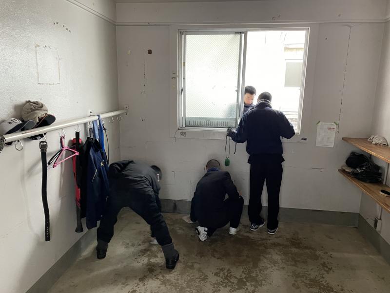 練習最終日は日頃より使わせてもらっている部室や更衣室などの環境整備を行いました。普段からきれいに使おうと気を付けているが大掃除をしてみて改めて使い方に気を付けようと思った。との声もありました。好きな野球を思い切ってできる環境に感謝の意を持って取り組みました。