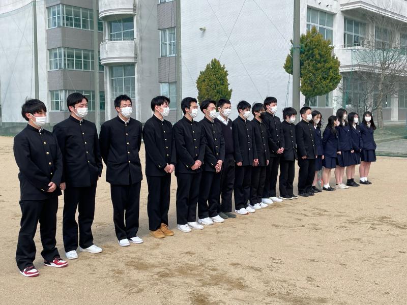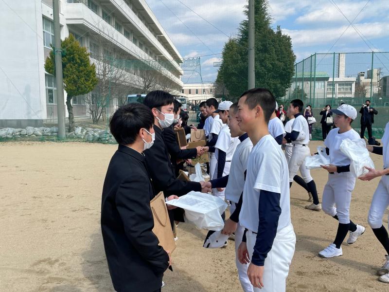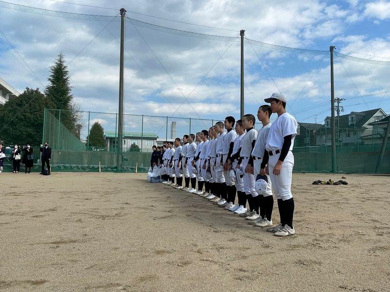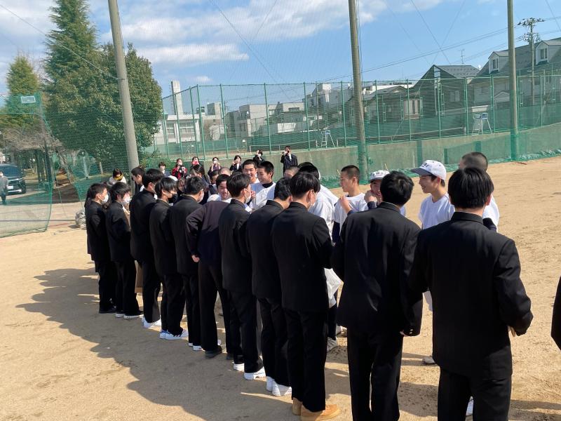 3月1日(水)二水野球部の歴史を確実に動かした3年生部員が卒業しました。思いを託された1、2年生から3年生へ断固たる決意を。そして思いを託した3年生から1、2年生へ背中を押す温かいエールが送られました。3年生が築き上げた二水野球部のカラーは1、2年生が引き継いでいきます。このように毎年3年生が残していくチームの財産は後輩たちが大切に守り、さらに新たな色を生み出し「伝統」として継承していく野球部となっていきます。二水野球部でしか味わえない「経験」と「学び」はこの先の人生に大きく影響してくるはずです。卒業後もたくさんの思い出が詰まったグラウンドにいつでも顔を出してください。そして、ここまで多面にわたり手厚くご協力いただきました保護者の皆様、心より感謝申し上げます。引き続き応援のほど、よろしくお願いいたします。