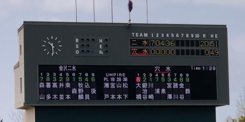 | 金沢二水 | 7 | 0 | 4 | 1 | 1☓ | | | | | 13☓ |
