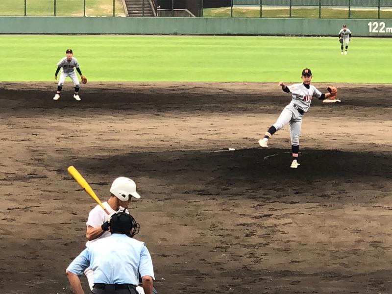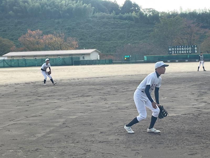 二水は1回と6回にチャンスからのタイムリーヒットで2点を奪うことができ、守備では取れるアウトを確実に奪いながら好プレーやヒット性の打球を数々アウトを奪っていき、ピンチでの踏ん張りがチームをより勢いづけていました。投げては、2年生投手の精度の高い投球でリズムを作り、6回無失点と試合の主導権を握ったまま二水ペースで試合が展開されていきました。