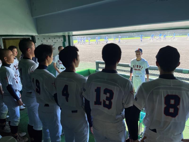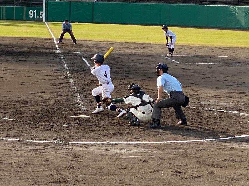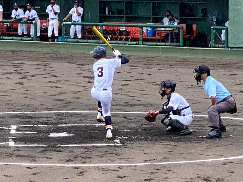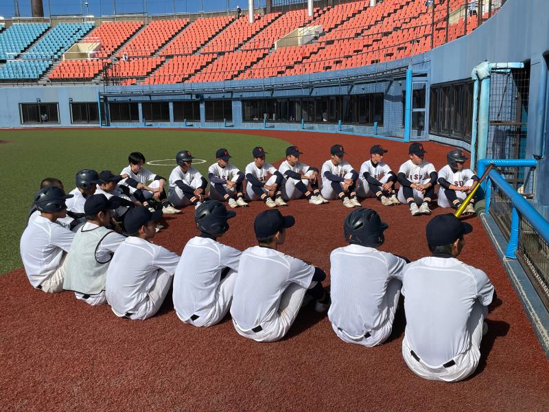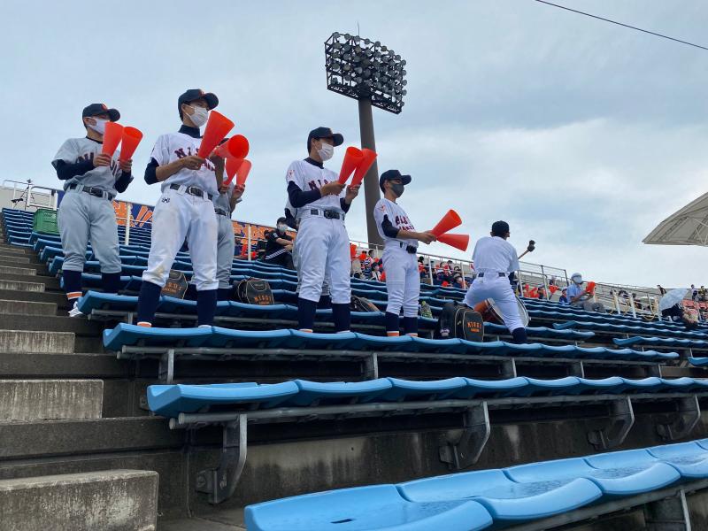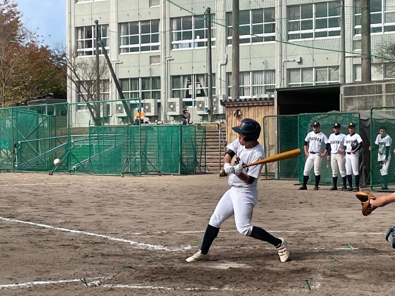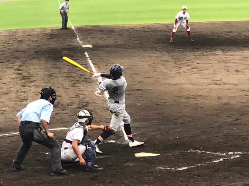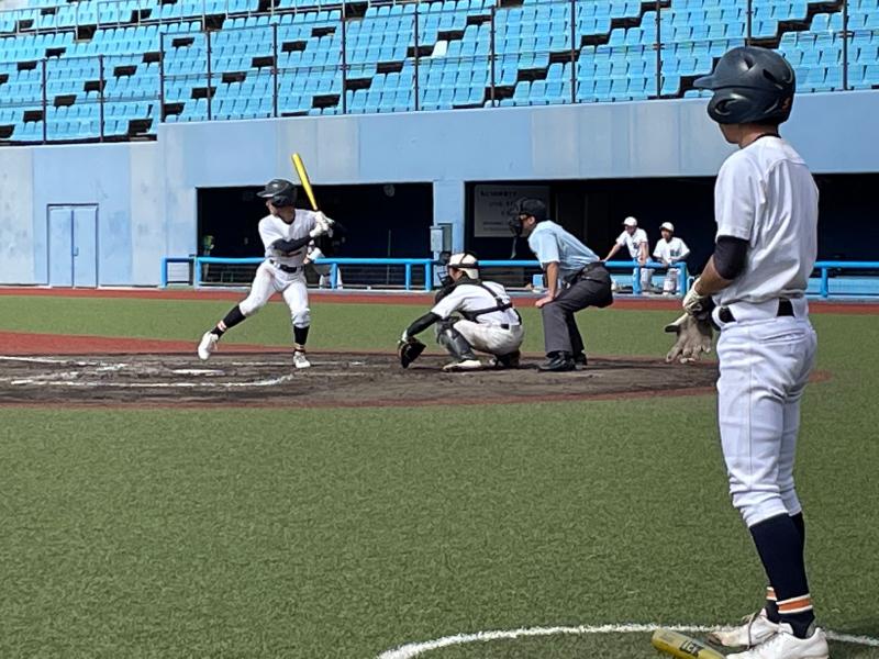 一方遊学館打線は、3回4回5回に打線が集中し、甘く入ったボールを確実に仕留められ単打と長打が重なった結果8点の失点を許してしまいました。6回以降は遊学打線を2安打に抑え、攻撃の流れをシャットアウトするも、チャンスでの一打がなかなか出ず、2回以降のスコアには0が並ぶ結果となりました。9回裏の攻撃では意地を見せた主将の一打で0死1、3塁で粘りを見せたが、その後の打線が繋がらず無得点で試合終了となりました。