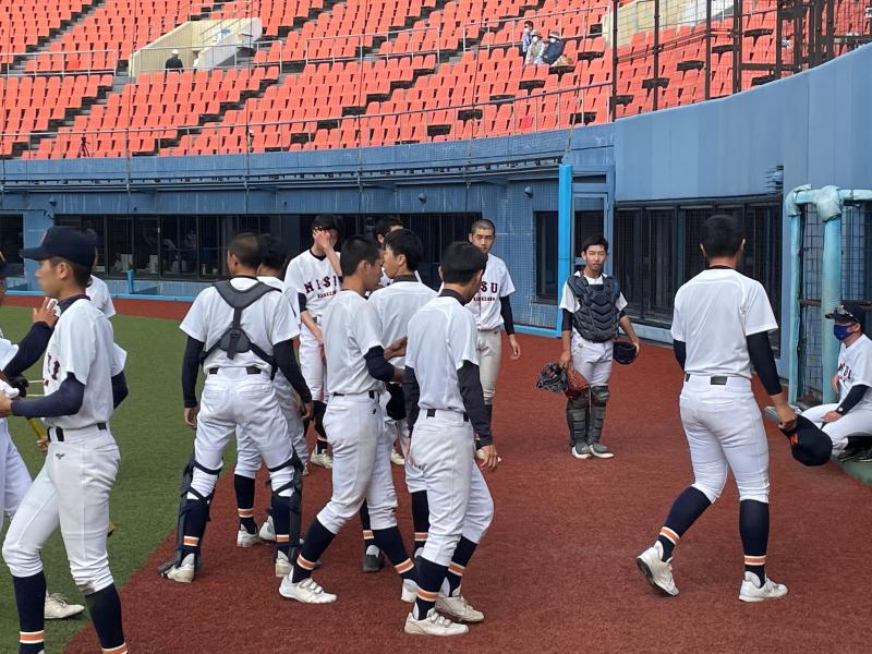 勝利を目前にして、逃してしまった悔しさを全員が痛感し、勝ち切ることの難しさを今大会を通して改めて学びました。そして3年生は今日まで本当に粘り強く戦い、二水高校野球部で多くを学び、気付き、成長できたと言えます。今日の敗戦を自身の中に大切に留め、努力し続けた自分を信じ、どんな困難が訪れても、立ち向かっていける人間になるよう期待しています。そして受験生として学校生活を大切にして、確実に実力を積み重ねていけるような日々を過ごし、「あと1アウトで負けた」という貴重な経験をこれからの人生の「糧」にしていきます。