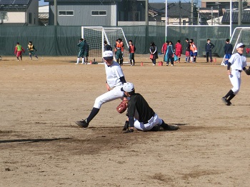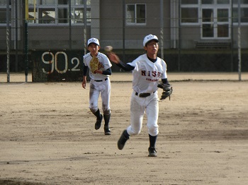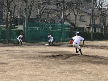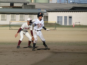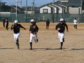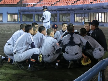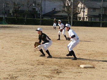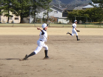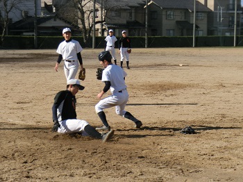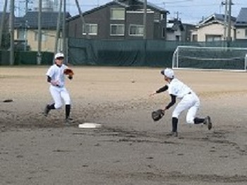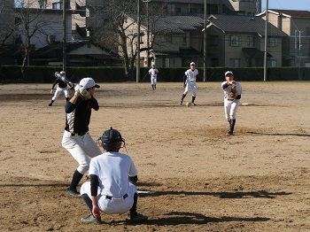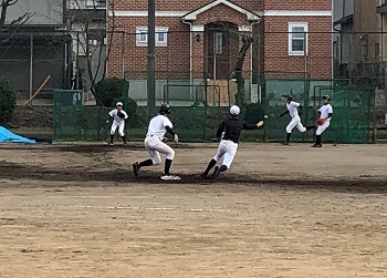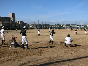 今年の12月は天候にも恵まれ、グラウンドで練習をできる日が多いです。日没が早いので、短時間で集中して課題の解決に向けて努力しています。最近は、確実にゲッツーをとるため、あるいは無駄な進塁を許さないための連携の確認を徹底しています。地道な練習ですが、全員が基礎の大切さを理解して取り組み、着実に完成度は高まっています。