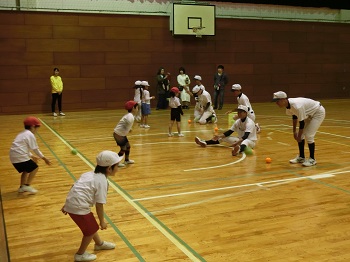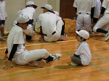 野球部 こども園との交流会の様子