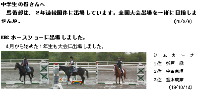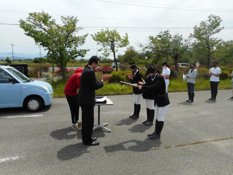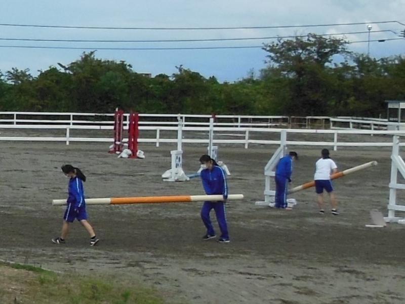 県総体は中止になり、今年初めての大会でした。2年生は障害飛越競技Bに出場し、入賞しました。