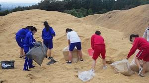 10月14日、俵ファームでもみ殻の袋詰めボランティアをしました。このまま放置されればゴミになりますが、再利用しやすいように袋に入れました。もみ殻は金沢大学馬術部等の馬糞と混ぜて有機肥料にして生産農家の方々に役立ててもらう予定です。持続可能な社会づくりの一助になると嬉しいです。日暮れまで行いました。