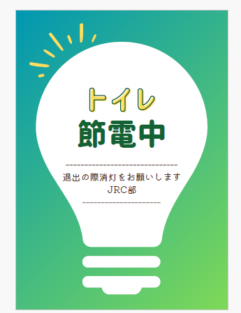 2024年12月23日 13時54分二水生の環境への意識を高めるため、JRC部では節電・節水のポスターを数種類作成し、トイレの手洗い場などにはりました。