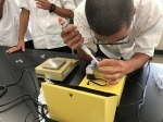 午前中の実験は、電気泳動装置やPCRの機器を等を使い、基本的な実験手法を