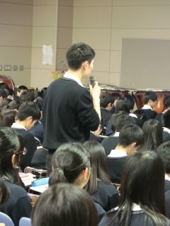 11月3日午後、2年生を対象に「先達に訊け!あかつきフォーラム」を開催しました。毎年、各界、各分野で活躍する若手卒業生を招き、それぞれの経験を交えながら、各分野の仕事内容や、その職業に就いた動機、将来の目標などについて語っていただき進路設計の一助とする目的で開催されています。本年度は山縣泉氏(44期)北村宜大氏(46期)室田律子氏(46期)松川陽亮氏(51期)仁志出憲聖氏(57期)の5名の卒業生を講師にお迎えしました。最初のパネルディスカッションで、自己紹介や今日のお話の内容についての紹介があり、次に聞きたい方の前に集まり5つのワークショップが行われました。