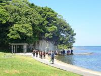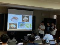 ふれあい海洋センター前の海に入って、貝やウニ、カニなどを生物を採集した後、これらの海洋生物を対象としてグループごとに課題研究に取り組みました。自然に恵まれた奥能登で、自然に対する科学的なものの見方・考え方を育み、環境と生命の大切さを理解することができました。