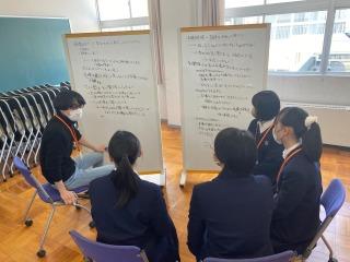 令和5年1月21日(土)に、「二水高校で哲学対話」が開催されました。西田幾多郎に繋がる京都大学の五十嵐涼介先生と5名の大学院生をお招きして、少人数グループで哲学対話を行いました。テーマは「人間とAIは友達になれるのか?」。AIという最先端技術についての問からはじまり「友情とは何か」さらに「人間とは何か」など、広がりながら深めていくことができました。自分で考え、自分の言葉で問い合うことで、自分と他者に対する気づきを経験し、思考力が高まる楽しい時間を過ごしました。