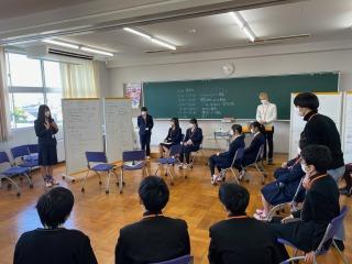1月20日(金)5~7限目に、2年生自然科学コースの生徒を対象として、金沢大学理工研究域の軸屋一郎先生、久保守先生、今井祐希さん、東宗太朗さんにお越しいただき、特別講義を開催しました。