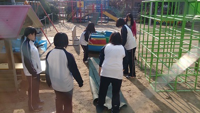 <▲通学路の清掃> <▼保育所遊具の清掃>