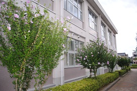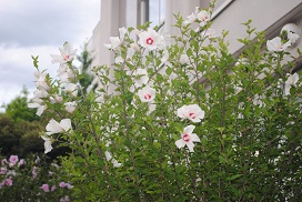 <音楽室の下に咲き始めた木槿>