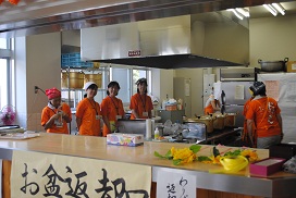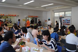 2013年7月21日 14時10分 7月20日(土)、21日(日)に行われた二水祭で、今年も本校PTAのみなさんによる「おっかさん」企画を食堂「パル」で行いました。PTA役員・理事の約50名のみなさんが前日の金曜日から道具・機材の準備をし、当日は2日間ともお揃いのTシャツで朝早くからおいしい「めった汁」を提供してくださいました。