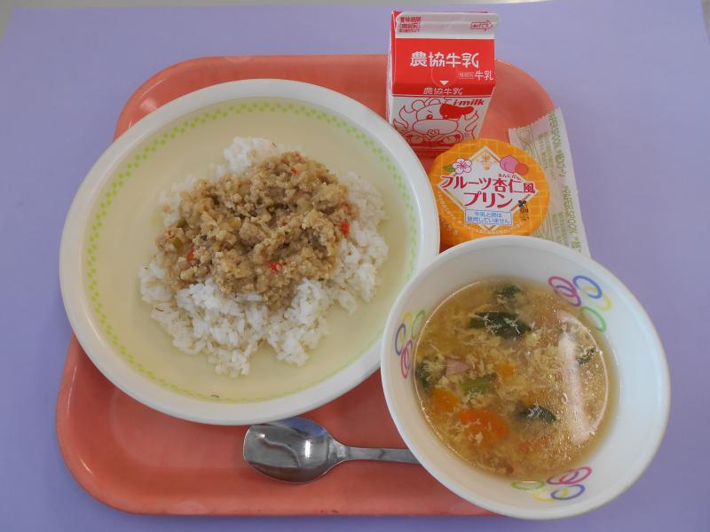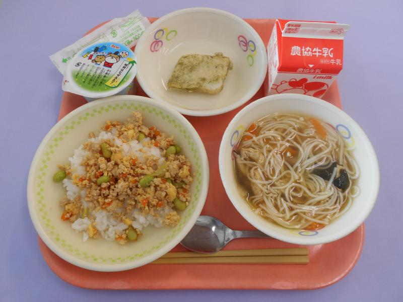 とりそぼろごはん(すしごはん) 牛乳
