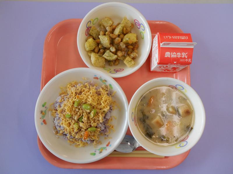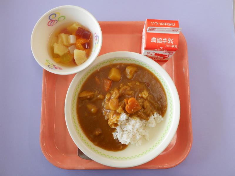 2学期が始まりました。今日のカレーにはハート形になったにんじんが入っていました。当たった人はラッキーです