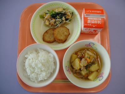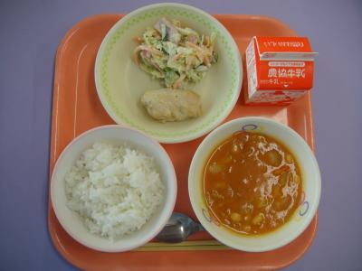 ★ポークビーンズは野々市小学校の児童に人気のメニューのひとつです。今日は1年生の子に「豆が入っているから苦手かと思ったけど、食べたらすっごくおいしかったよ!」と言われました。給食を通してどんどん食べられるものが増えるのはとても嬉しいことです。