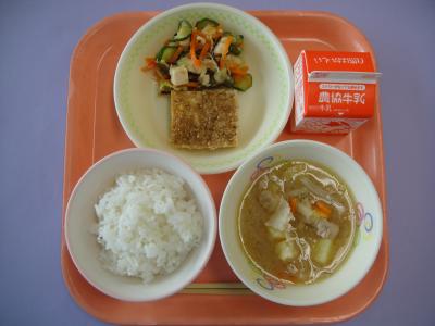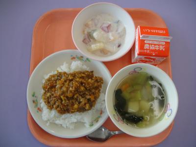 ★今日は気温が上がり、バテてしまいそうな日でしたが、食欲そそられるピリ辛チキンと、さっぱりバンサンスーだったからか、みんな大喜びで食べていました。