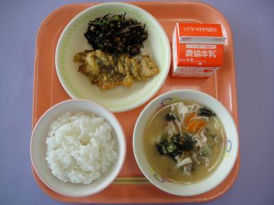 ★三味やきは、にんにく・しょうが・ねぎの3つの香味野菜を使っていることから「三味」といいます。ごま油でにんにく・しょうが・ねぎを炒めて香りを出し、砂糖・しょう油・みりん・酒で煮てたれを作り、さつま揚げにかけて焼いています。ごはんにぴったりのおかずで、どのクラスもごはんが完食でした!