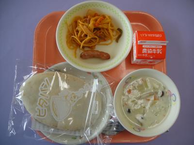 ★児童たちはピタパンにウインナーやナポリタンを挟んで嬉しそうに食べていました。なかには、クラムチャウダーにピタパンをつけておいしそうに食べている人もいて、各々に楽しんで食べている様子が見られました。