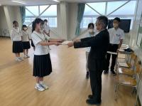 9月26日に後期生徒会認証式を行いました。生徒会役員1人1人が、生徒全員に抱負や決意を述べていました。後期は2年生が中心となります。3年生からバトンを引き継ぎ更に発展させていって欲しいと思います。