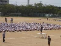 3年生がそれぞれの団に分かれて応援の練習を行いました。