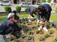 花の会の方のお世話の下、美化委員会とボランティア生徒による花の植栽を行いました。