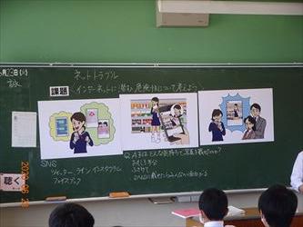 23日(火)に警察から講師の方をお招きし、1組から4組の学級毎に「ネットトラブル」についての授業を行いました。