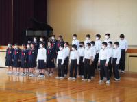 10月18日(水)の朝、1年生は、合同朝礼と合唱の中間発表を行いました。