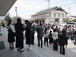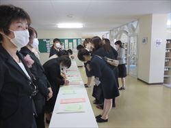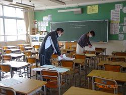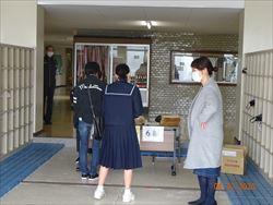 3年生の分散登校を行いました。廊下で生徒の弾んだ声が響いていました。生徒の皆さんがいて、初めて学校です。
