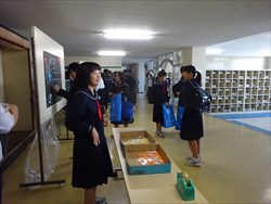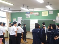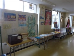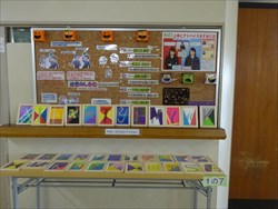 11月1日(金)文化祭に向けて、校内に美術部や授業(総合的な学習)の作品、夏休み一人一研究、明和特別支援学校との交流作品を展示してあります。