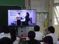 キャシー先生の友達について紹介する学習をしました。教頭先生もビデオでのゲスト出演をしました。