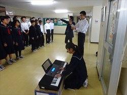 合唱コンクールまで、あと一週間となりました。教室だけでなく、体育館、廊下、生徒玄関で練習をしています。さわやかな歌声が校内に響いています。