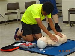 野々市消防署より講師を招いて、救命法の校内研修を行いました。事故の発生の対応、心肺蘇生術の訓練などは、一刻を争います。すぐに対応できるように常日頃から行動できるようにしなければいけません。熱中症の対応も含めて、改めて意識を高めることができました。