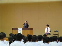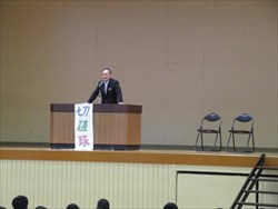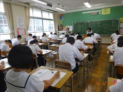 始業式では、トイレ工事に関わった工事関係者のかたへの感謝の気持ちを「ありがとう」の言葉で表現することや夏の高校野球から「切磋琢磨」について話がありました。その後、新任式が行われ、黒本先生(家庭科)とキャシー先生(ALT)の紹介がありました。2限から、復習テストに取り組みました。