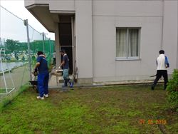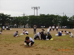 6時15分より、500名余りの生徒や保護者の皆さんが参加され、運動場の草むしりや側溝の泥上げを行いました。途中で大雨となり早めに切り上げましたが、とてもきれいに