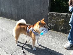 PTAあいさつ運動最終日のことです。イヌが捨てられていた空のペットボトルを加えて