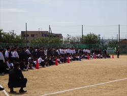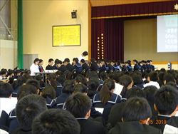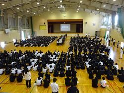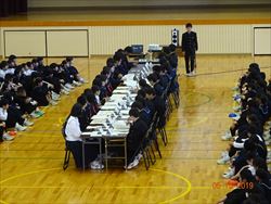 全員が、議論に参加しやすいようにとコの字形式で行いました。前期生徒会は、「新しくいこう~誰からも愛される野っ中へ~」を目標に掲げ、今ある企画を全校生徒が参加したくなるような企画にしようと頑張っています。総会では、全クラスからの提言を全員投票を行ってランキング上位の案を中心に各委員会の活動に取り入れてもらうことを確認しました。