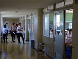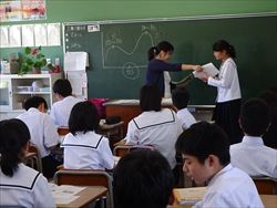 小学校の先生が、中学校の授業を参観しました。送り出した生徒たちの状況を見ていただきました。生徒たちは、素直そうな笑い声を出したり,小学校の先生二顔を見て喜んでいました。その後、小中の先生方が、小中連携について話し合いました。