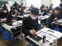 あけましておめでとうございます。1月10日は3学期の始業式後に、競書会を行いました。