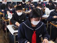 12月5日に1年生は特活室、2年生は被服室の2会場で市内在住の1人暮らしのお年寄りの皆さんに宛てて年賀状を書きました。この取り組みは、本校では、長く続けられている取り組みです。参加してくれた生徒の皆さんありがとうございます。