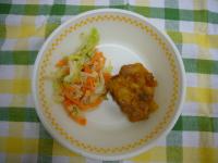 この名前がついたそうです。ソースには、たまねぎと赤黄緑のピーマンを入れました。調理員さんがすべて