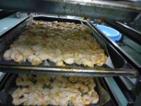 1年生は8組が今日の「焼き鳥」でした。給食なので串には刺せず、コンベクションオーブンで鶏肉とねぎを焼き、甘辛のたれでからめた