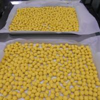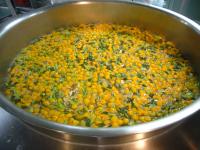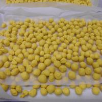 白玉粉とかぼちゃペーストを混ぜて団子を作りました 釜の中では鮮やかな色に 今日の給食