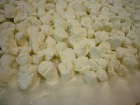 クッキングシートの上に団子 今日は小さめに作ったそうで 釜の中で浮いてきたらできあがり 今日の給食