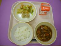 生あげです。この量で野々市中の 豆板醤たっぷりのけっこう 今日の給食 ザ・中華でした